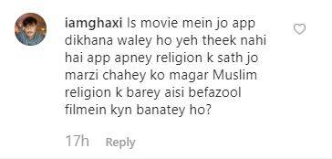 सन्नी सैनी नाम के इंस्टाग्राम यूजर ने एक्ट्रेस से धर्म परिवर्तन पर सवाल किया है. यूजर ने फिल्म के पोस्टर पर कमेंट किया, तू धर्म क्यों नहीं चेंज करती?