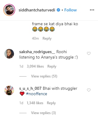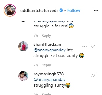 सिद्धांत के इस पोस्ट के बाद ट्रोलर्स जमकर अनन्या का मजाक उड़ाने लगे. एक ट्रोलर ने लिखा- इतने स्ट्रगल के बाद आंटी. दूसरे ट्रोलर ने लिखा- अब वापस दीदी बनने के लिए स्ट्रगल करना पड़ेगा. वहीं कुछ ट्रोलर्स ने पिछली बार नेपोटिज्म पर हुए अनन्या और सिद्धांत के बयान को लेकर अनन्या को ट्रोल कर दिया. ट्रोलर्स ने अनन्या को स्ट्रगलर कहा. एक ट्रोलर ने लिखा- स्ट्रगलर के साथ फोटो. वहीं एक ट्रोलर ने लिखा- रूही बॉलीवुड में अनन्या आंटी के स्ट्रगल को सुनते हुए.