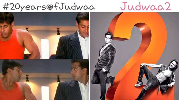 साल 1997 की ब्लॉकबस्टर फिल्म 'जुड़वां' के 20 साल आज यानी 7 फरवरी को पूरे हुए हैं और इस मौके पर अब एक बार फिर से डेविड धवन और साजिद नाडियाडवाला ने मिलकर 'जुड़वां 2' की शूटिंग के दौरान के ही फिल्म का पोस्टर रिलीज कर दिया है.