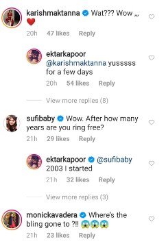 वहीं एक कमेंट में एकता ने बताया कि उन्होंने 2003 में अंगूठियां पहनना शुरू किया था. बता दें, एकता कपूर न्यूमेरोलॉजी को फॉलो करती हैं. इसी के कारण वो रिंग्स और ब्रेसलेट पहनती हैं.