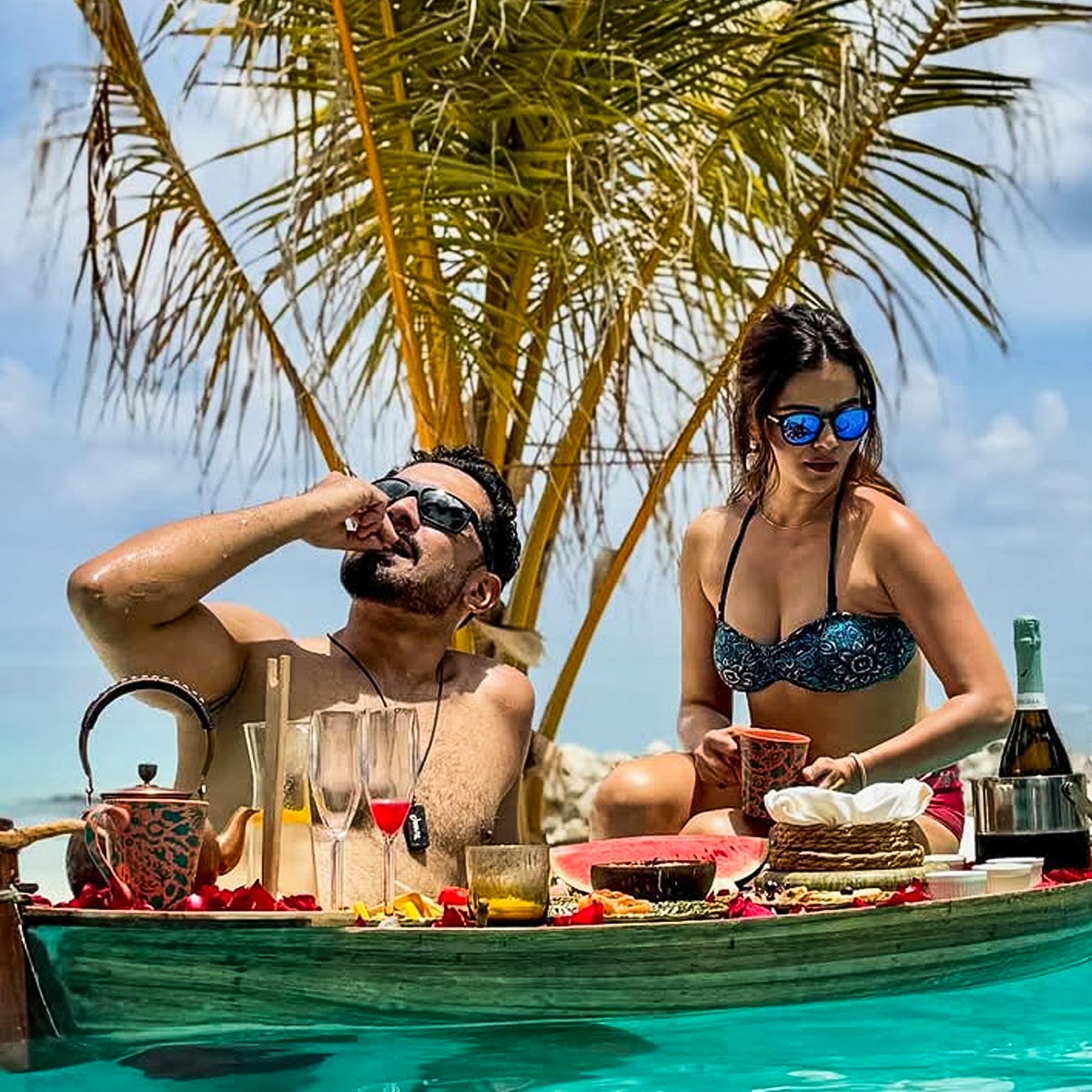 एक फोटो में अभिनव पूल के अंदर रुबीना और दूसरी फीमेल फ्रेंड के साथ पोज दे रहे हैं. तीनों फ्लोटिंग ब्रेकफास्ट का मजा लेते हुए दिखे.