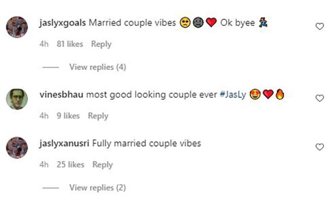अली और जैस्मिन की फोटो को फैंस काफी पसंद कर रहे हैं और कमेंट सेक्शन में दोनों पर अपना प्यार लुटा रहे हैं. कुछ यूजर्स को जैस्मिन और अली हसबैंड-वाइफ वाली वाइब्स दे रहे हैं. एक यूजर ने लिखा- मैरिड कपल्स वाइब्स.