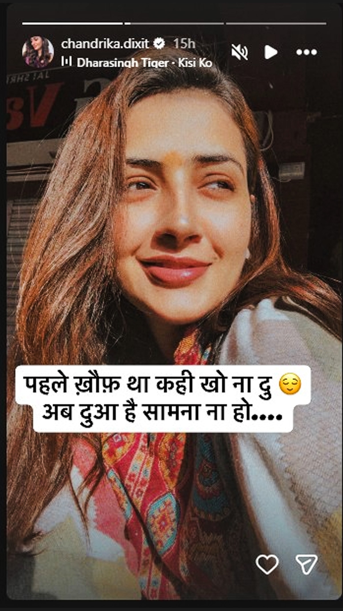 चंद्रिका ने अब अपनी इंस्टाग्राम स्टोरी पर दो और क्रिप्टिक पोस्ट शेयर की हैं, जिन्हें देखकर फैंस का मानना है कि उन्होंने पति की ओर इशारा किया है. चंद्रिका ने इंस्टा स्टोरी पर अपनी फोटो शेयर की है, जिसके कैप्शन में उन्होंने लिखा- पहले खौफ था कहीं खो न दूं. अब दुआ है सामना ना हो.