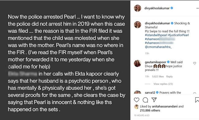 पर्ल के सपोर्ट में आईं दिव्या खोसला