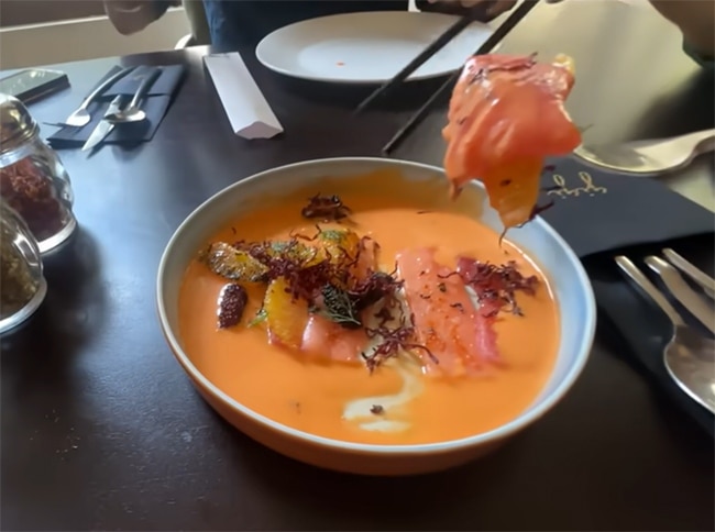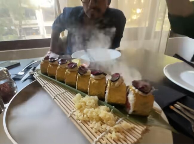 रेस्टोरेंट पहुंचने के बाद भारती को मालूम पड़ता है फराह खान ने 24 कैरेट गोल्ड प्लेटेड सुशी ऑर्डर की है. ये जानकर वो हैरान हो जाती हैं. कॉमेडियन कबूल करती हैं उन्हें अभी तक truffle क्या होता है पता नहीं था. भारती बोलीं- मुझे शर्मिंदा होना चाहिए, मैं नहीं जानती थी truffle क्या चीज है. ये 1 किलो 1.5 लाख की है. इससे अच्छा मैं गोल्ड चैन बना लूं. भारती को black fungus udon डिश काफी पसंद आई. मीठे में उन्हें tiramisu सर्व किया गया. भारती को इस डिश से प्यार हो गया.