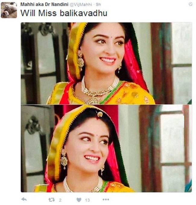 'बालिका वधू' की लीड एक्ट्रेस माही विज ने ट्वीट कर कहा, 'यह शो जल्द ही ऑफ एयर होने वाला है. अच्छी यादें, अच्छा शो, अच्छे लोग.' एक और