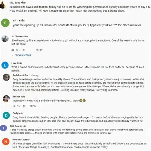दिग्गज गायकों के साथ स्टेज परफॉर्मेंस दे रहीं सायली के वीडियो वायरल होने के बाद लोगों ने इंडियन आइडल 12 को जमकर ट्रोल करना शुरू कर दिया है. लोग आरोप लगा रहे हैं कि शो फर्जी चीजें दिखाकर टीआरपी लूटने की कोशिश कर रहा है. एक यूजर ने लिखा- सुरेश वाडकर के साथ जो इंसान मंच शेयर कर रहा है वो इतना गरीब कैसे हो सकता है. एक अन्य यूजर ने लिखा- गायकी में भविष्य बनाने का सपना देखने वालों का वक्त क्यों बर्बाद कर रहा हे ये शो.