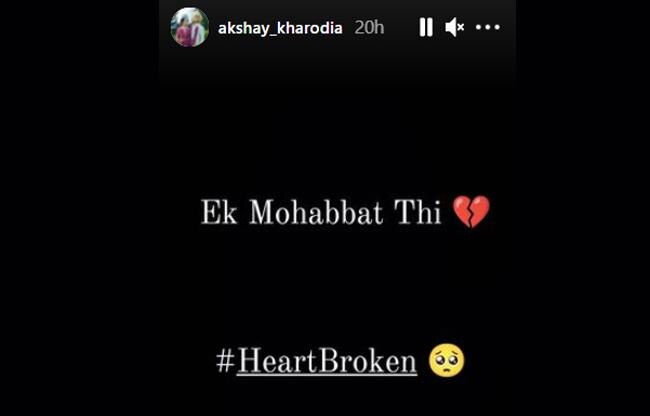 अक्षय ने अपनी इंस्टाग्राम स्टोरी पर 'एक मोहब्बत थी' लिखकर उसके नीचे #Heartbroken लिखा है. उनका यह इंस्टाग्राम स्टोरी एक्टर की मैरिड लाइफ में अनबन की ओर इशारा कर रहा है. अक्षय और दिव्या की शादी को अभी एक ही महीना हुआ है, और इस बीच अक्षय का यह पोस्ट उनकी न्यूली मैरिड लाइफ में सबकुछ ठीक नहीं होने का हिंट दे रहा है. इसके आगे अक्षय ने अपने प्रोफेशनल फ्रंट से जुड़े पोस्ट्स साझा किए हैं.