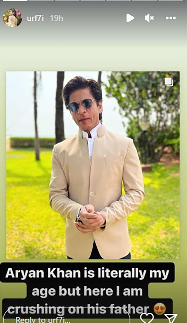 इंस्टा स्टोरी में उर्फी जावेद लिखती हैं कि आर्यन खान मेरी उम्र के हैं, लेकिन मुझे उनके फादर पर क्रश है. उर्फी को तो जो कहना था कह दिया, लेकिन उनकी इस पोस्ट पर शाहरुख खान या आर्यन की नजर पड़ी है या नहीं वो पता नहीं. पर हां इतना जरूर पता है कि उर्फी की ये पोस्ट किसी के लिये भी शॉकिंग नहीं है, क्योंकि उनसे किसी भी चीज की उम्मीद करना कम ही लगता है.