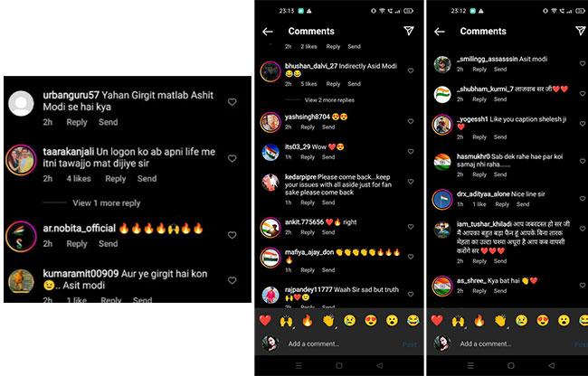 शैलेश की शैली से निकली ये रचना किसके लिए है ये तो एक्टर ही बेहतर जानते होंगे. मगर सोशल मीडिया यूजर्स ने बेहिचक अपना जवाब सामने रखा. लोगों को यकीन है कि शैलेश लोढ़ा ने अपनी इस पोस्ट के जरिए प्रोड्यूसर असित मोदी पर निशाना साधा है. एक यूजर ने लिखा- सर जब से आपने तारक मेहता छोड़ा है आप बहुत दुखी पोस्ट और स्टोरी डालते हो. सब कुछ ठीक है ना? दूसरे ने लिखा- इनडायरेक्टली असित मोदी. एक शख्स लिखता है- कटाक्ष सीधा प्रोड्यूसर पर 😂. लोगों के मुताबिक गिरगिट कोई और नहीं असित मोदी हैं. यूजर्स ने शैलेश लोढ़ा की इस रचना की तारीफ की है.