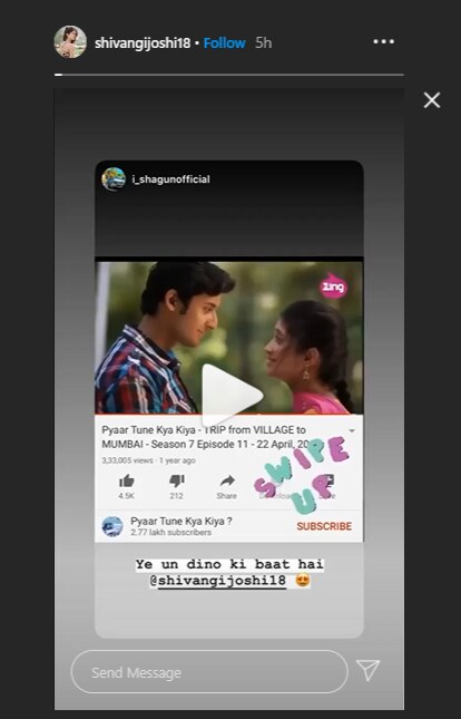 फोटो शेयर करते हुए शिवांगी ने लिखा- ये उन दिनों की बात है. फोटो में शिवांगी को-स्टार Shagun Pandey संग नजर आ रही हैं. बता दें कि इस फोटो को पहले शगुन ने शेयर किया था. फिर शिवांगी ने अपनी इंस्टा स्टोरी पर इसे शेयर किया. ये रिश्ता क्या कहलाता है से पहले शिवांगी ने ये है आशिकी और प्यार तूने क्या किया जैसे शोज में काम किया था.