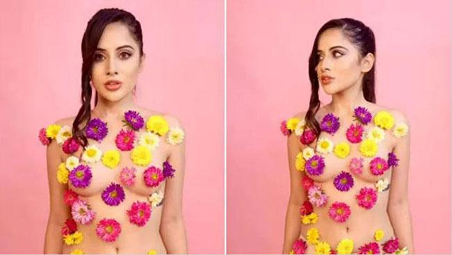 जब बॉडी पर उर्फी ने चिपकाए फूल