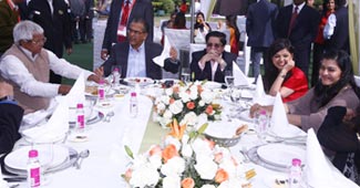 एजेंडा आजतक के दूसरे दिन, शुक्रवार को लंच के दौरान इंडिया टुडे ग्रुप के चेयरमैन अरुण पुरी, लालू प्रसाद यादव और अभिनेत्री काजोल.