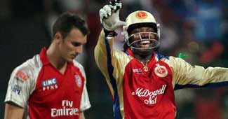 क्रिस गेल की करिश्माई बल्लेबाजी और तिलकरत्ने दिलशान के तूफानी अर्धशतक की मदद से बैंगलोर ने अपना विजयी अभियान जारी रखते हुए यहां टी-20 लीग मुकाबले में कोच्चि को नौ विकेट से हराकर लगातार पांचवीं जीत दर्ज की.