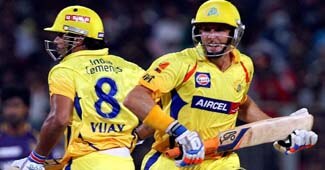 हसी ने 39 गेंद में 56 रन की पारी खेली जबकि ब्रावो ने मैच की अंतिम गेंद पर छक्का जड़कर सुपरकिंग्स की जीत सुनिश्चित की. ब्रावो ने नाबाद 11 रन बनाए. धोनी ने मैच के बाद कहा, ‘हसी ने अच्छी बल्लेबाजी की और मुरली विजय के साथ मिलकर हमें काफी अच्छी शुरूआत दिलाई.