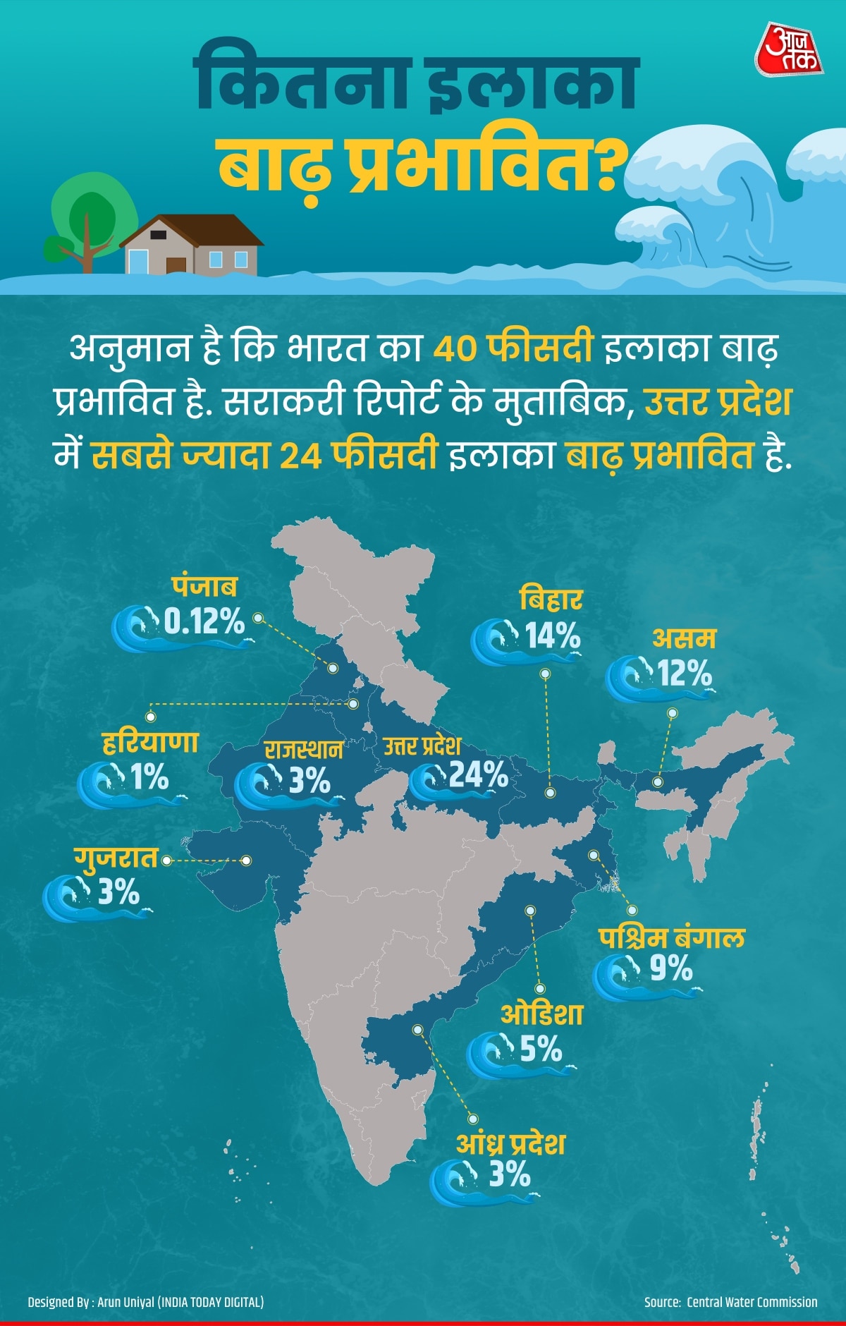 भारत दुनिया के उन देशों में है जहां बाढ़ से हालात बहुत ज्यादा खराब हैं. पिछले हफ्ते आई जल आयोग की रिपोर्ट बताती है कि 1986 से 2022 के बीच 2 करोड़ हेक्टेयर से ज्यादा की जमीन बाढ़ से प्रभावित हुई है.