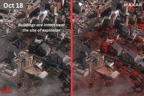 ये हमला सेंट्रल गाजा के अल-अहली अल-अरबी अस्पताल पर हुआ था. हमले के बाद सोशल मीडिया पर वायरल हो रहीं तस्वीरें और वीडियो ने इसकी भयावहता तो दिखा ही दी थी. लेकिन अब सैटेलाइट तस्वीरों से इसकी भयावहता और भी साफ हो जाती है.
