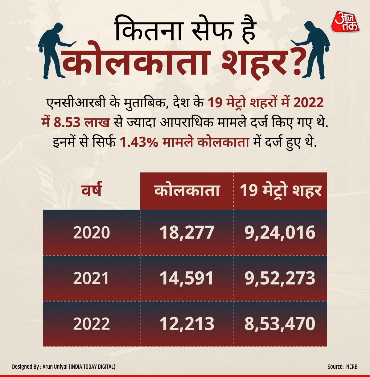 नेशनल क्राइम रिकॉर्ड ब्यूरो (NCRB) के आंकड़ों के मुताबिक, कोलकाता लगातार तीन साल से सबसे सेफ मेट्रो सिटी बना हुआ है.
