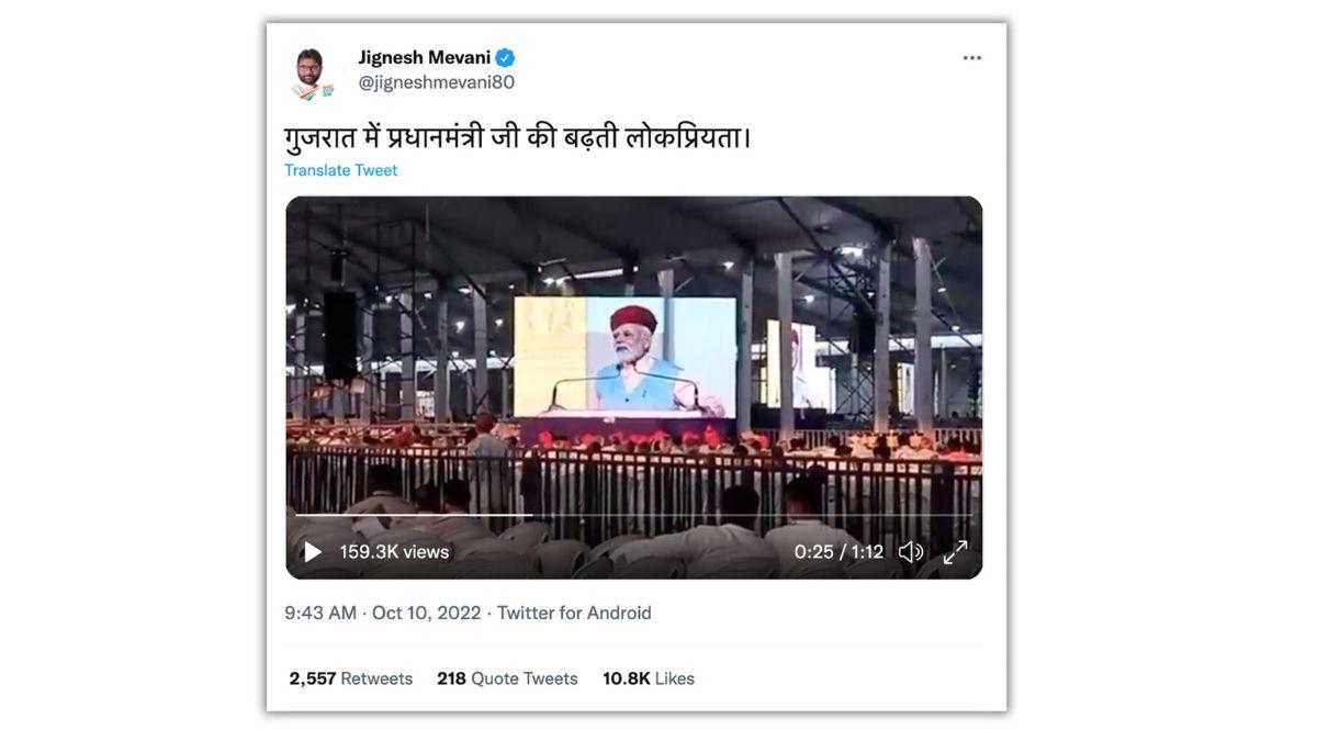 वीडियो पर तंज कसते हुए कई लोग कह रहे हैं कि प्रधानमंत्री मोदी इतने लोकप्रिय हैं कि लोग उनका भाषण सुनने नहीं आ रहे हैं. वीडियो को शेयर करते हुए कांग्रेस नेता जिग्नेश मेवानी ने लिखा, ‘गुजरात में प्रधानमंत्री जी की बढ़ती लोकप्रियता.’