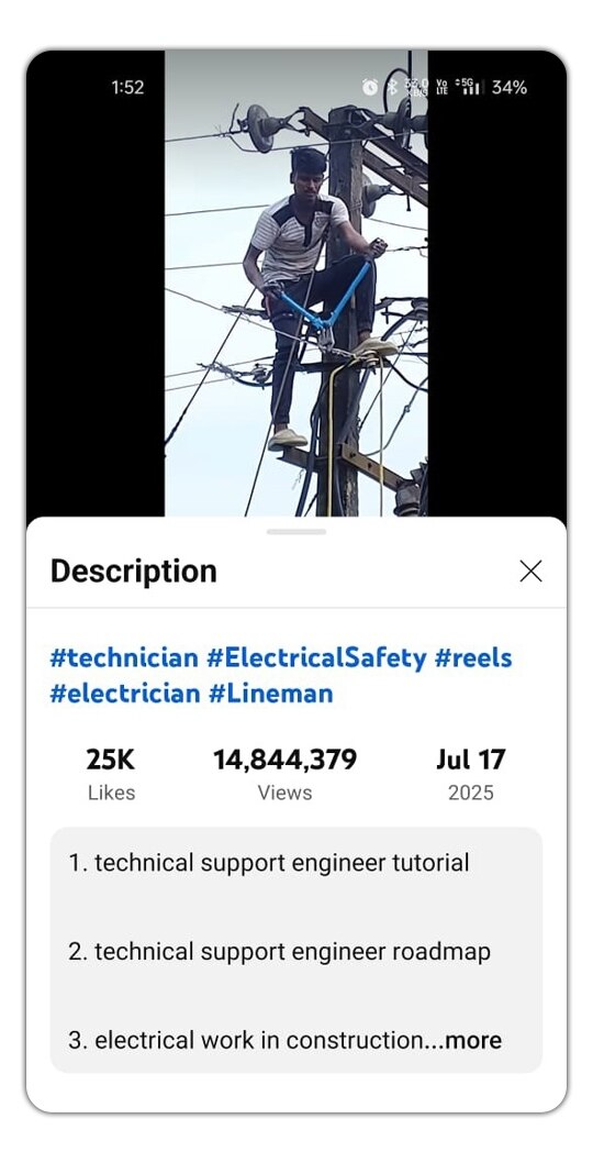 'टेक्निकल वर्क' नाम के इस यूट्यूब चैनल पर अक्सर बिजली के काम से संबंधित वीडियो शेयर किए जाते हैं. इनमें से किसी में बिजली के खंबे पर चढ़कर कोई इलेक्ट्रीशियन का काम कर रहा है तो किसी में ट्रांस्फॉर्मर के रिपेयर का काम चल रहा है.