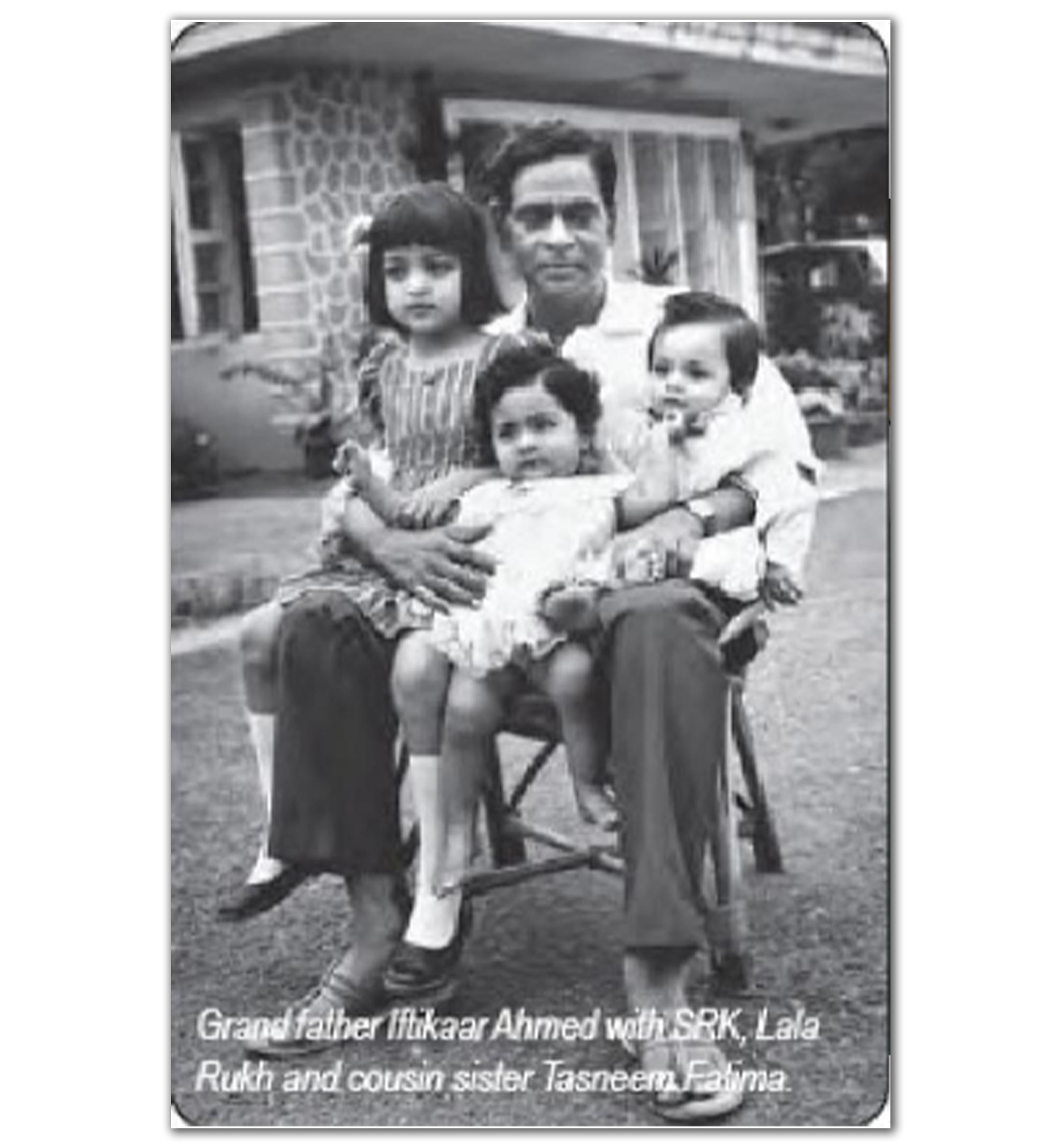 इफ्तिखार अहमद के साथ शाहरुख खान और उनके भाई-बहनों की एक तस्वीर नीचे देखी जा सकती है. इसे मुश्ताक शेख की किताब से लिया गया है.