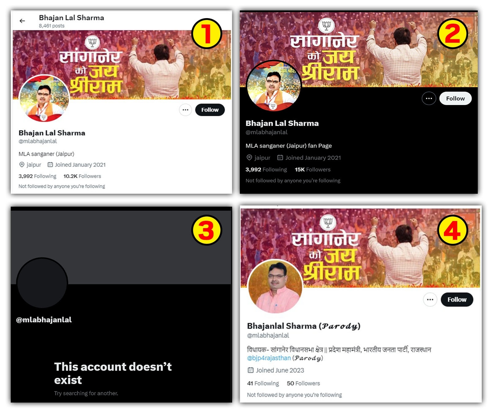 कुछ ही घंटों के अंदर अकाउंट के हजारों फॉलोवर बढ़ गए. इसके बाद इसके 'बायो सेक्शन' में बतौर डिस्क्लेमर 'फैन' लिख दिया गया. फिर कुछ समय बाद ये अकाउंट डीएक्टिवेट हो गया. लेकिन तब तक इससे किए गए ट्वीट्स के स्क्रीनशॉट वायरल हो चुके थे. बाद में ये अकाउंट भजनलाल शर्मा पैरोडी के नाम से दोबारा एक्टिवेट हुआ. इस बार इसके फॉलोवर्स की संख्या तकरीबन 15 हजार से घटकर 50 हो चुकी थी. इस अकाउंट का आर्काइव्ड वर्जन यहां देखा जा सकता है.