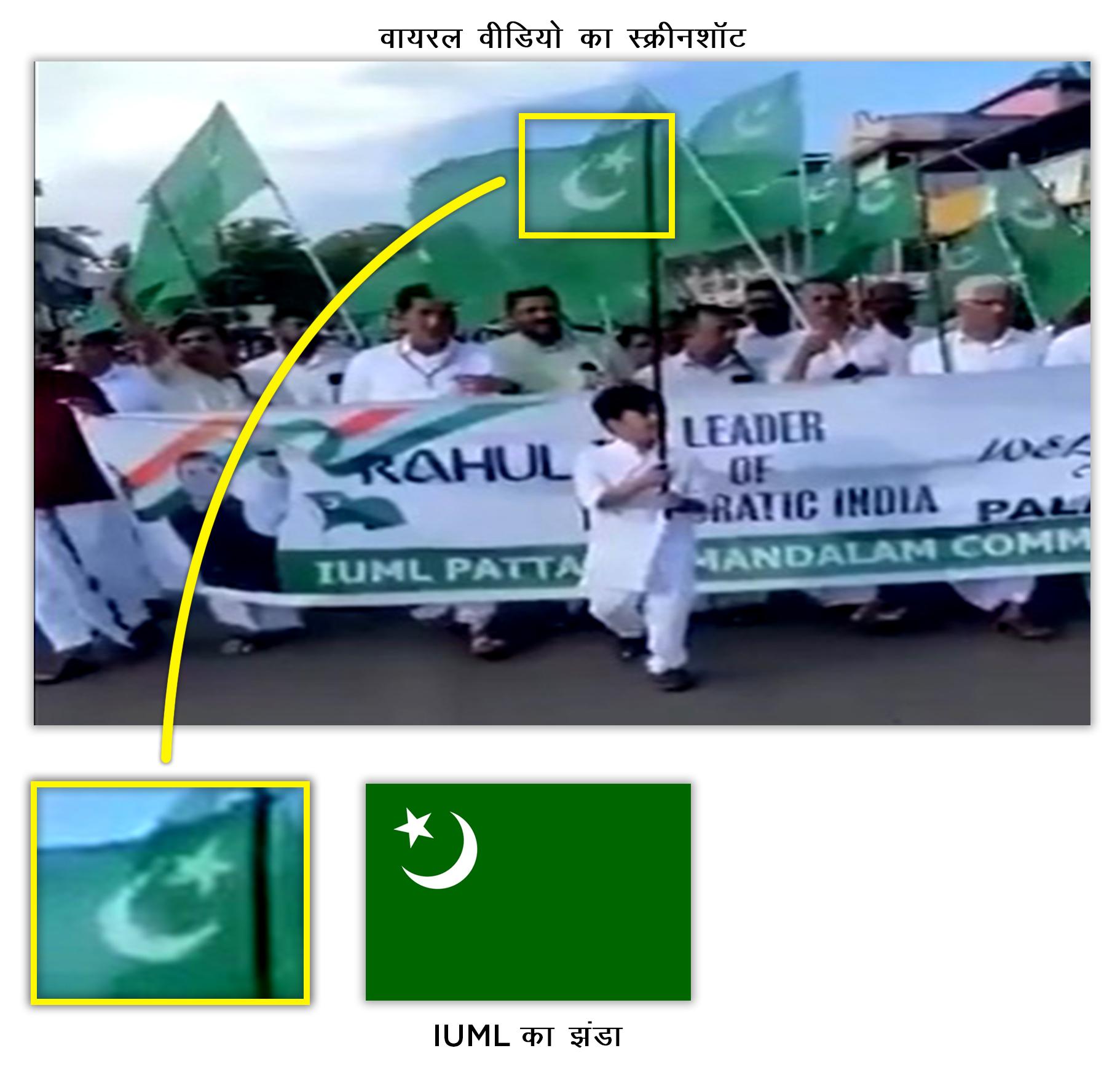 इंडिया टुडे की फैक्ट चेक टीम ने पाया कि वायरल वीडियो में दिख रहा हरा झंडा पाकिस्तान का नहीं बल्कि इंडियन यूनियन मुस्लिम लीग यानी IUML का है.