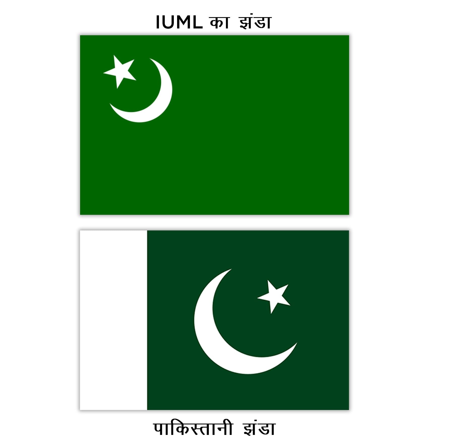 पाकिस्तान का झंडा आईयूएमएल के झंडे से अलग दिखता है. इसमें चांद-तारे का आकार काफी बड़ा होता है और ये एकदम बीचोंबीच होते हैं. साथ ही, इसमें बाईं तरफ एक सफेद पट्टी भी होती है.