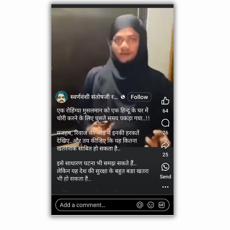 कई लोग इस वीडियो को मुस्लिमों पर तंज कसते हुए शेयर कर रहे हैं और इसे भारत का बता रहे हैं. मिसाल के तौर पर, एक व्यक्ति ने '#muslimmuktbhart' हैशटैग के साथ लिखा, "दुश्मन घर में रहेंगे तो साजिशे तो करेंगें ही मुस्लिमों का भारत देश में रहना ही ग़लत है". इसी तरह, एक अन्य फेसबुक यूजर ने लिखा, "यह देश की सुरक्षा के बहुत बङा खतरा भी हो सकता है.. क्योंकि इस युवक की तरह हथियारबंद आतंकवादी भी इसी प्रकार बुरके का इस्तेमाल कर सुरक्षाबलों को भ्रम में डाल सकते हैं.. सार्वजनिक जगहों पर सुरक्षा के लिहाज से आप बुर्का हटा इनकी जांच भी नहीं कर सकते.. इस्लाम और लोकतंत्र एक झटके में खतरे में आ जाता है.. कांग्रेस, सपा, राजद जैसे इनके सेक्यूलर फौरन विधवा विलाप करने लगते हैं".