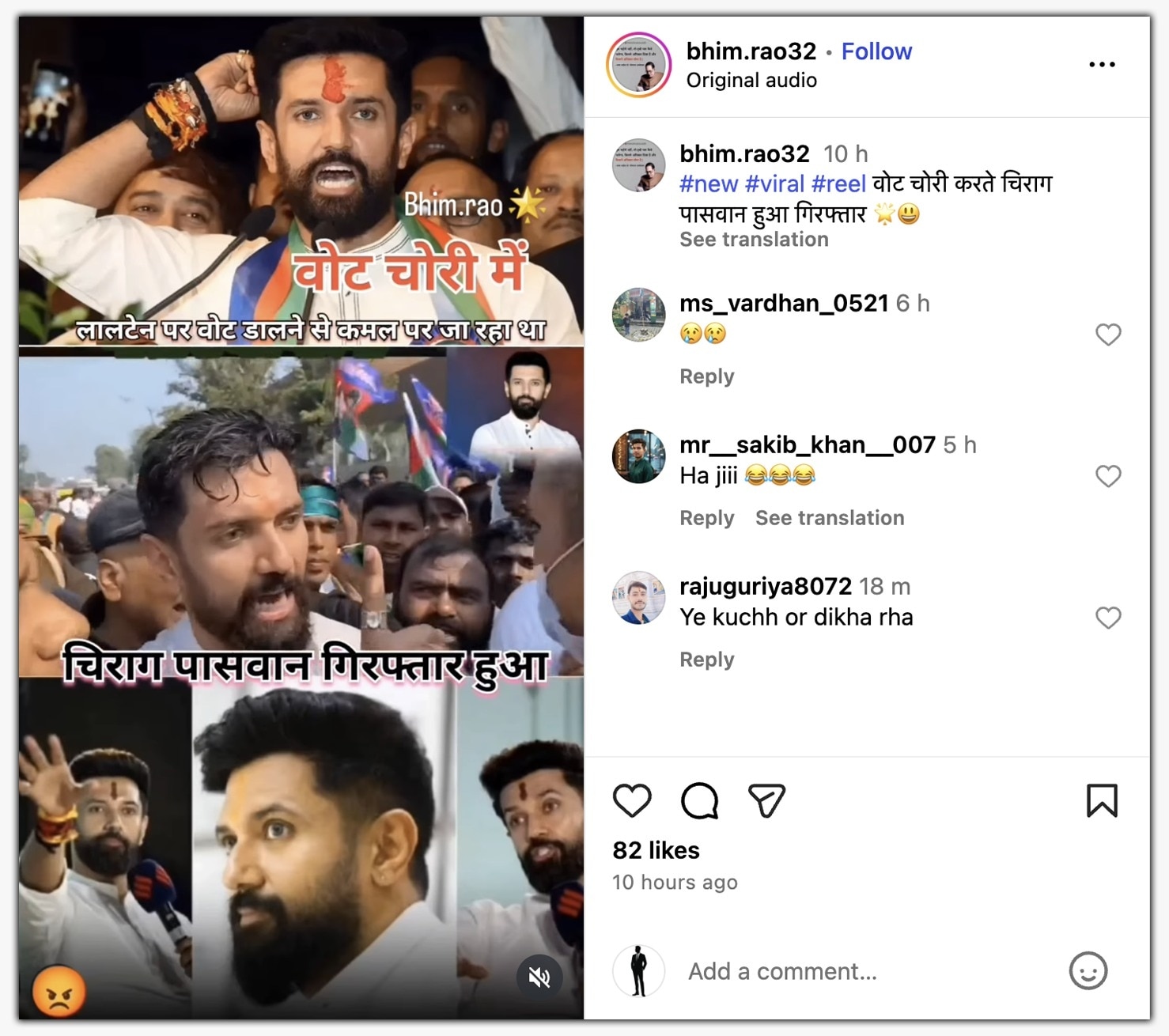 लेकिन अब एक वीडियो के जरिए दावा किया जा रहा है कि एनडीए के सहयोगी दल एलजेपी के नेता और केंद्रीय मंत्री चिराग पासवान को वोट चोरी के आरोप में गिरफ्तार किया गया है. पोस्ट में लिखा है कि जब लोग आरजेडी का बटन दबा रहे थे तो वोट बीजेपी को जा रहा था.