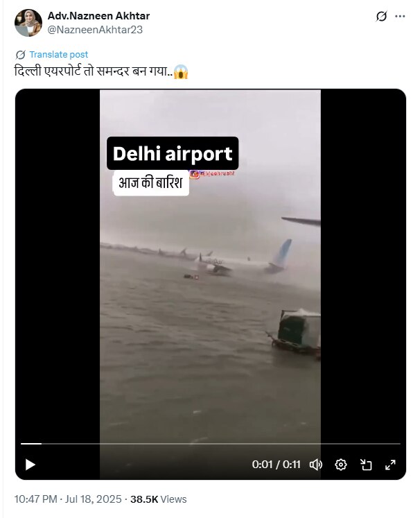 दिल्ली और उत्तर भारत में मॉनसून ने दस्तक दे दी है. हर साल की तरह इस साल भी इंटरनेट दिल्ली-एनसीआर में जलभराव की खबरों से भरा है. इसी बीच सोशल मीडिया पर एक वीडियो काफी शेयर किया जा रहा है जिसमें किसी एयरपोर्ट के रनवे पर भारी जलभराव देखा जा सकता है.