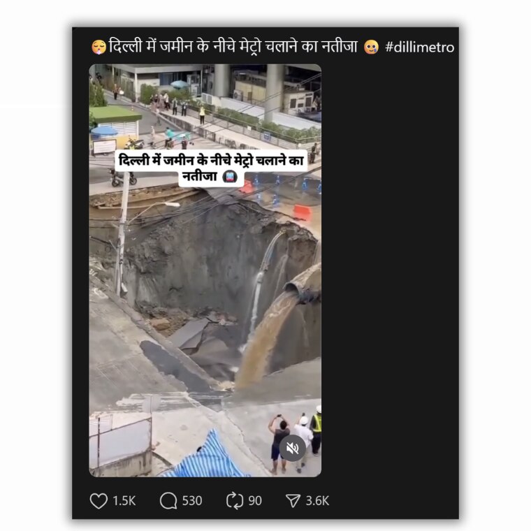 तेजी से धंसती एक सड़क और इससे मची अफरा-तफरी का वीडियो शेयर करते हुए कुछ सोशल मीडिया यूजर्स कह रहे हैं कि ये दिल्ली की घटना है जहां अंडरग्राउंड मेट्रो बनाने के दुष्परिणाम की वजह से ऐसा हुआ.