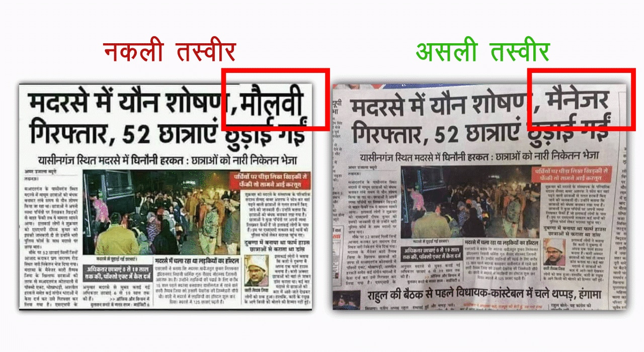इंडिया टुडे एंटी फेक न्यूज़ वॉर रूम (AFWA) ने पाया कि ये खबर 2017 की है, अभी की नहीं. इसके साथ ही, क्लिपिंग के साथ छेड़छाड़ भी की गई है. एडिटिंग के जरिए खबर में 'मैनेजर' की जगह 'मौलवी' जोड़ दिया गया है.
