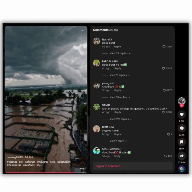 इस टिकटॉक हैंडल के बारे में थोड़ी खोजबीन करने पर हमें पता लगा कि इस पर वायरल वीडियो 20 मई, 2025 को पोस्ट किया गया था. यहां पोस्ट के कैप्शन में '#ai' का इस्तेमाल किया गया है.