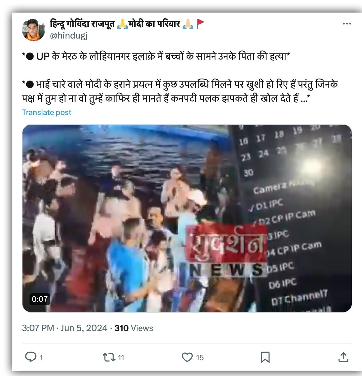 आजतक फैक्ट चेक ने पाया कि ये 4 जून की मेरठ की ही घटना है लेकिन इसमें मारा गया आदमी मुस्लिम समुदाय से ही था, न कि हिंदू.