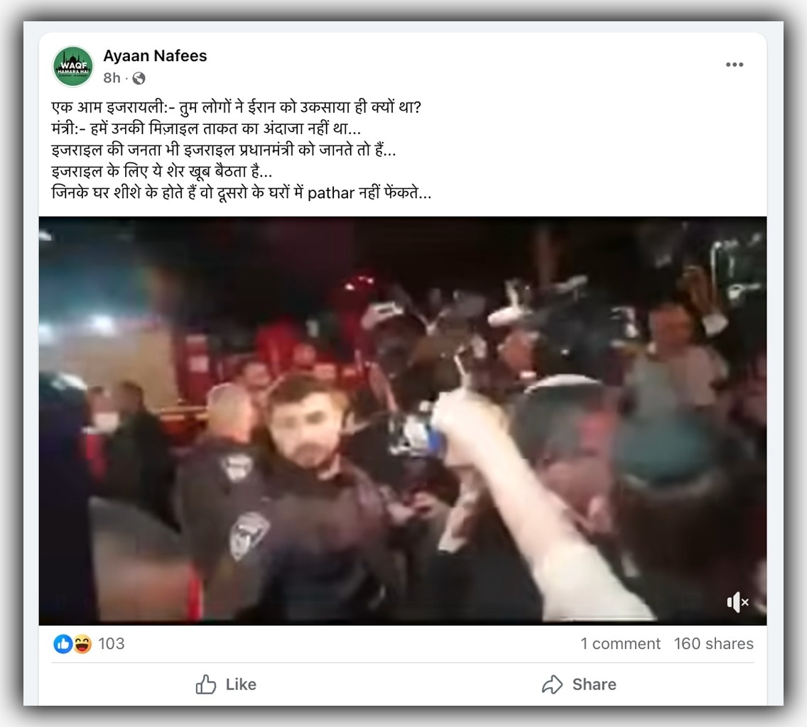 वीडियो शेयर करते हुए एक व्यक्ति ने लिखा, “एक आम इजरायली:- तुम लोगों ने ईरान को उकसाया ही क्यों था? मंत्री:- हमें उनकी मिजाइल ताकत का अंदाजा नहीं था. इजराइल की जनता भी इजराइल प्रधानमंत्री को जानते तो हैं. इजराइल के लिए ये शेर खूब बैठता है. जिनके घर शीशे के होते हैं वो दूसरो के घरों में pathar नहीं फेंकते.”