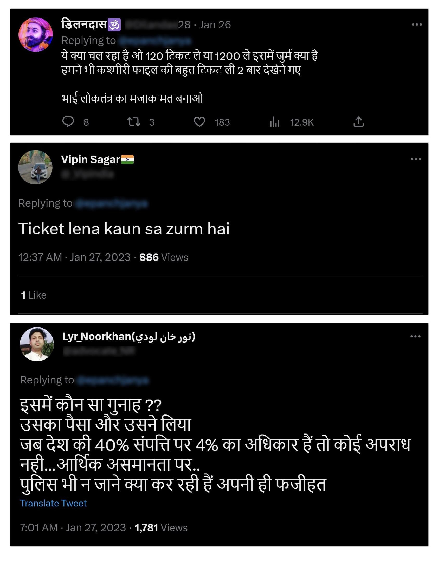 इस कथित खबर को ट्विटर के कई वेरिफाइड हैंडल्स ने भी पोस्ट किया है. कई लोग ये समझ रहे हैं कि असम के इस शख्स को 'पठान' के 120 टिकट खरीदने की वजह से गिरफ्तार किया गया. कई लोग अचंभे में हैं कि किसी फिल्म का टिकट खरीदना जुर्म तो नहीं है, फिर आखिर इस शख्स को क्यों गिरफ्तार किया गया.