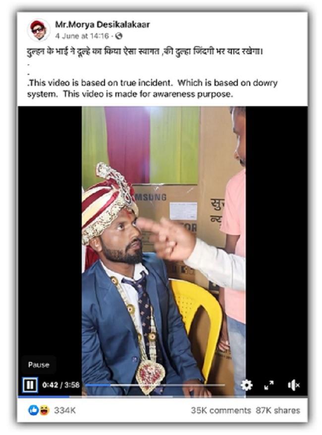 जब हमने इस वीडियो की जांच की तो हमें पता चला ये एक स्क्रिप्टेड वीडियो है जिसे दहेज प्रथा के खिलाफ जागरूकता फैलाने के लिए बनाया गया था.