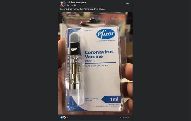 यानी ये बात साफ है कि एडिटिंग सॉफ्टवेयर की मदद से तैयार एक नकली फोटो की मदद से लोगों में भ्रम फैलाया जा रहा है कि फाइजर की वैक्सीन को ई-सिगरेट के जरिये वाष्प के रूप में लिया जा सकता है और ये चीन में बनी है.