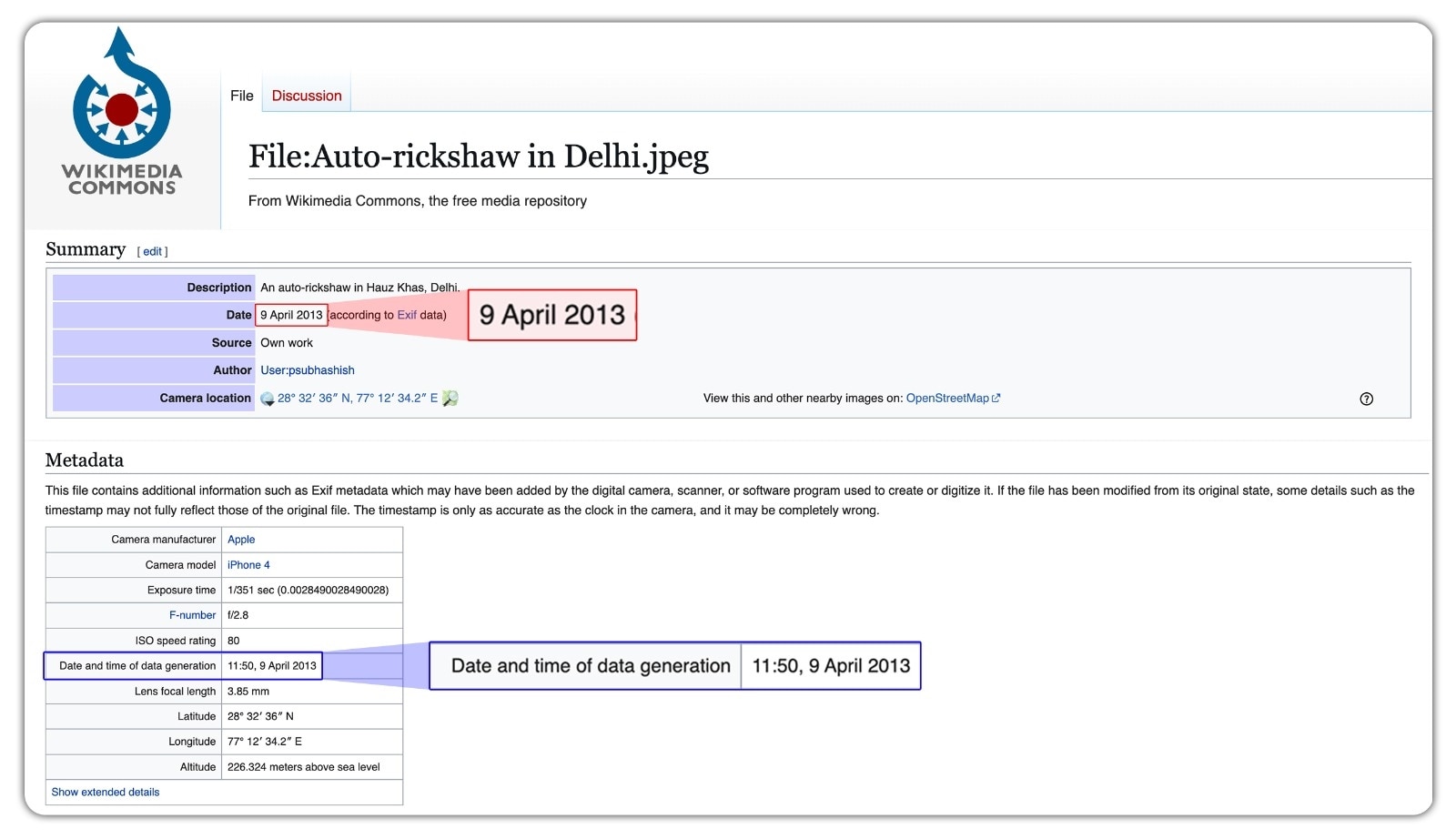 विकिमीडिया कॉमन्स पर मौजूद इस फोटो के एक्सिफ डेटा के मुताबिक, इस फोटो को सुभाशीष पाणिग्रही नाम के व्यक्ति ने 9 अप्रैल 2013 को दिल्ली के हौज खास इलाके में खींचा था. फोटो को एप्पल आईफोन 4 से लिया गया है. अन्य जानकारियों को वेबसाइट पर पढ़ा जा सकता है.