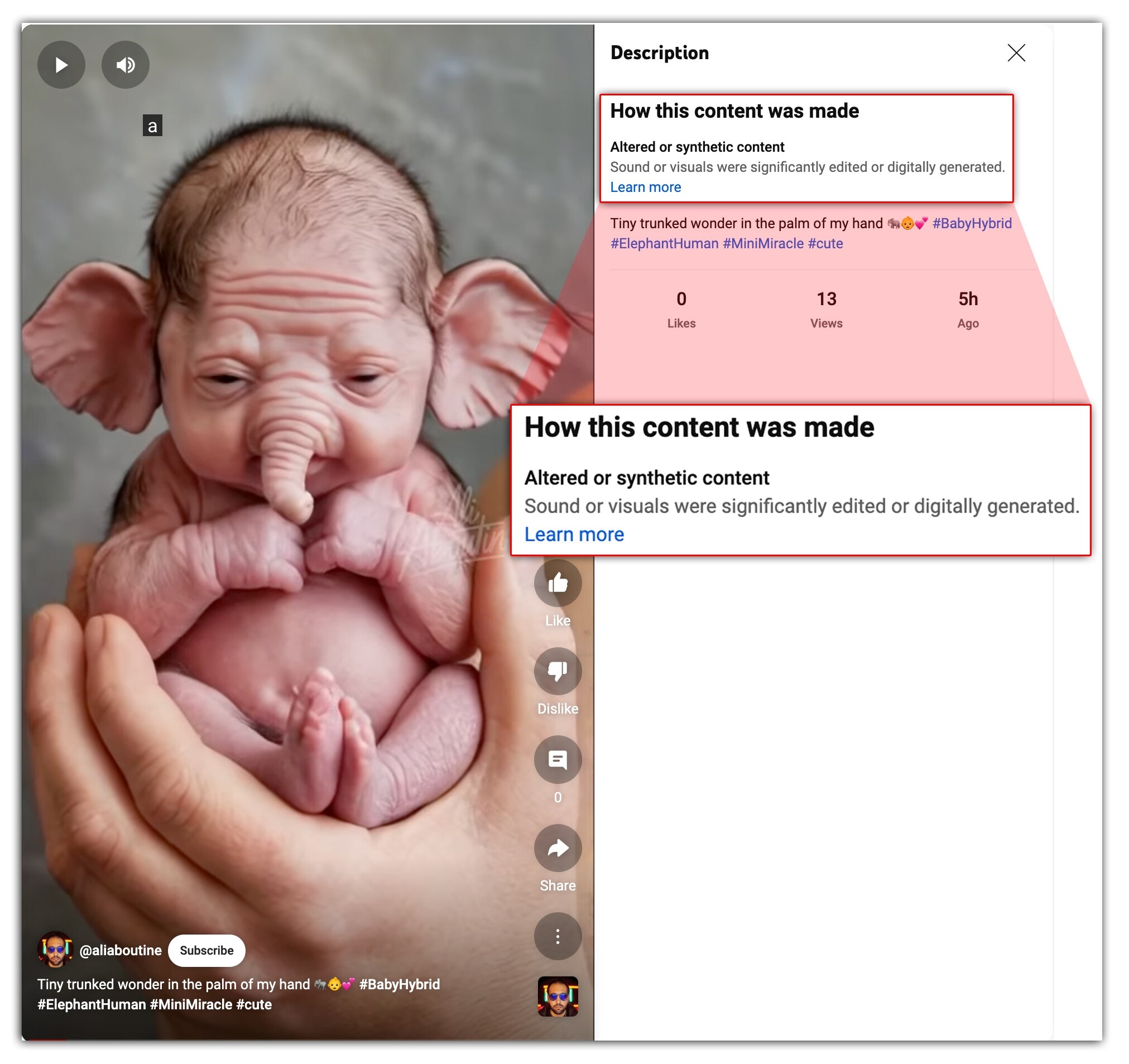 अपडेट: हमने ये रिपोर्ट लिखते वक्त सूंड वाले बच्चे का वीडियो बनाने वाले एआई आर्टिस्ट अली अबाउटीन से संपर्क किया था. उनके जवाब के मुताबिक इस रिपोर्ट को अपडेट किया गया है.