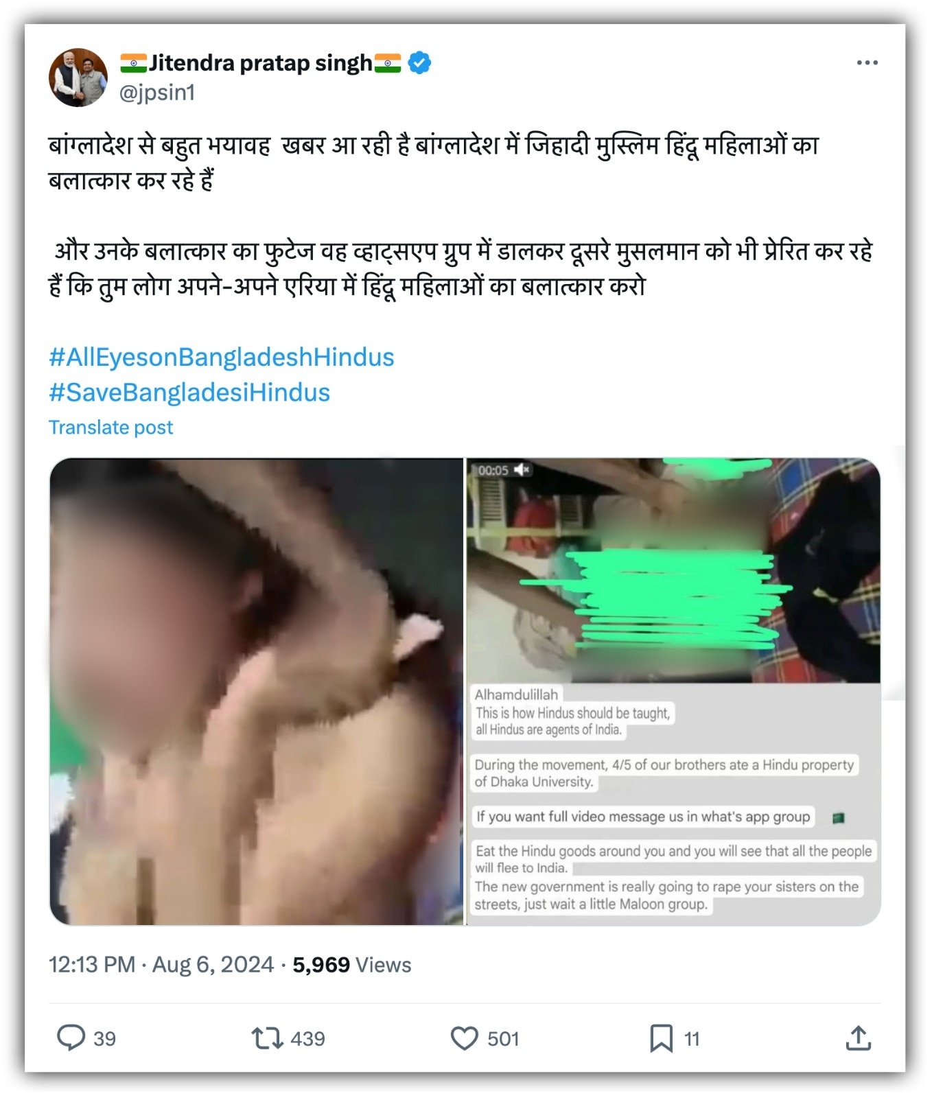 इसी संदर्भ में अब सोशल मीडिया पर विचलित कर देने वाले एक वीडियो के स्क्रीनशॉट्स वायरल हो गए हैं. इन्हें शेयर करते हुए कहा जा रहा है कि बांग्लादेश में मुस्लिम, हिंदू महिलाओं का बलात्कार कर रहे हैं. और सिर्फ इतना ही नहीं, उनके रेप का वीडियो बनाकर उसे वॉट्सएप ग्रुप्स में शेयर करके दूसरे मुसलमानों को भी ऐसा करने के लिए उकसा रहे है.