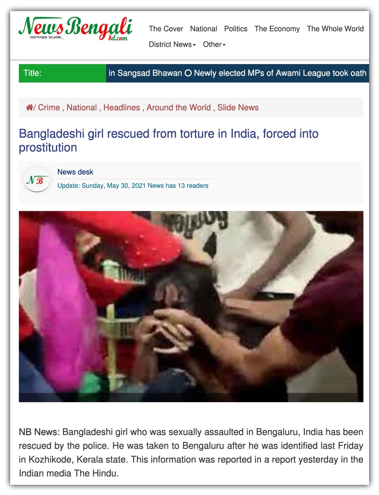 पुलिस का कहना था कि महिला को मानव तस्करी गैंग के जरिए बांग्लादेश से भारत लाया गया था. कुछ खबरों में बताया गया है कि लड़की को भारत, नौकरी दिलाने का झांसा देकर बहला-फुसला कर लाया गया था. लेकिन फिर उसे जबरन वेश्यावृत्ति में धकेल दिया गया था.