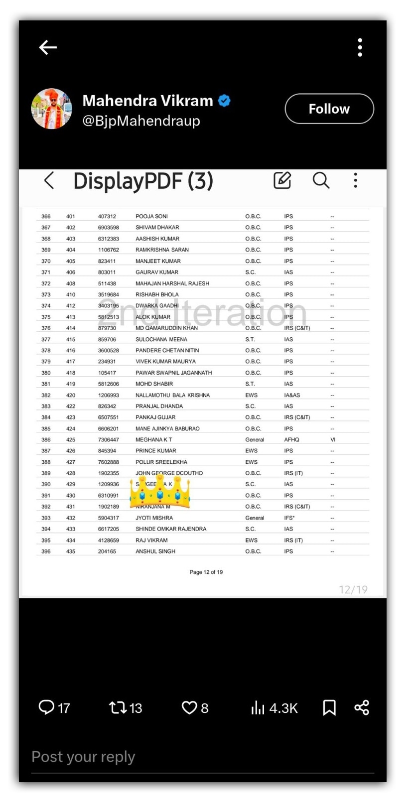 इतना ही नहीं, ज्योति के बचाव में कुछ और लोग भी उतर आए और कहने लगे कि ये एक ब्राह्मण लड़की को बदनाम करने की साजिश है. महेंद्र विक्रम नाम के शख्स ने एक लिस्ट शेयर की, जिसमें ज्योति मिश्रा के नाम के आगे 'जनरल' लिखा हुआ है. उन्होंने दावा किया कि ये लिस्ट ज्योति मिश्रा के पिता यानी सुरेश मिश्रा ने उन्हें भेजी है.