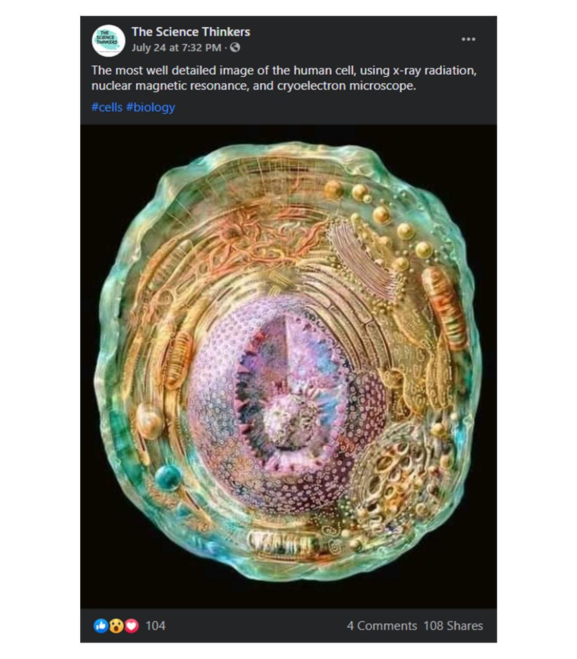 स्पष्ट है कि पशु कोशिका की एक कलाकृति को असली इंसानी कोशिका की फोटो बताते हुए भ्रम फैलाया जा रहा है.