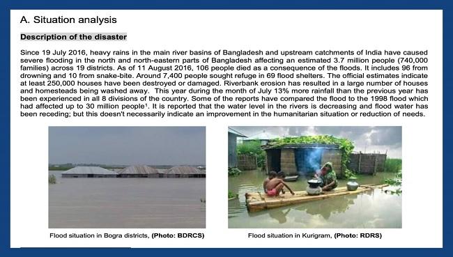 ये रिपोर्ट जुलाई 2016 में बांग्लादेश के कुछ हिस्सों में बाढ़ से मची तबाही को लेकर थी और इसमें बताया गया था कि किस तरह इस संस्था ने बाढ़ से प्रभावित लोगों की मदद की. रिपोर्ट में वायरल तस्वीर को बांग्लादेश के एक जिले कुरीग्राम का बताया गया है और फोटो क्रेडिट बांग्लादेश की एक सामाजिक संस्था 'आरडीआरएस' को दिया गया है.