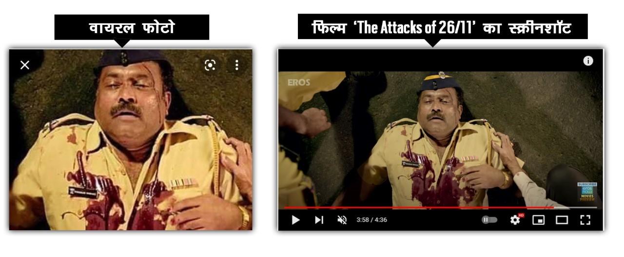 हमने पाया कि सोशल मीडिया पर वायरल फोटो ‘The Attacks of 26/11’ नाम की फिल्म के एक सीन से ली गई है, न कि यह तुकाराम ओंबले की असली फोटो है.