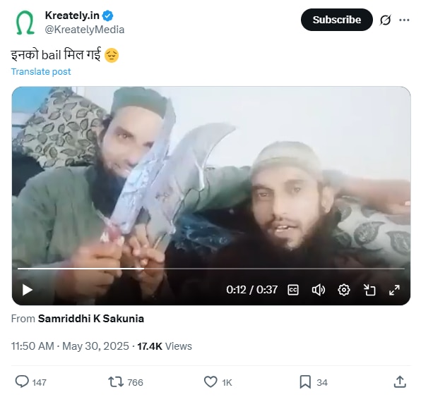 दोनों आरोपियों की तस्वीरें और वीडियो शेयर करते हुए लोग कोर्ट के इस कथित फैसले की आलोचना कर रहे हैं कि कन्हैया लाल की निर्मम तरीके से हत्या करने वाले इन दोनों लोगों को बेल कैसे मिल सकती है.