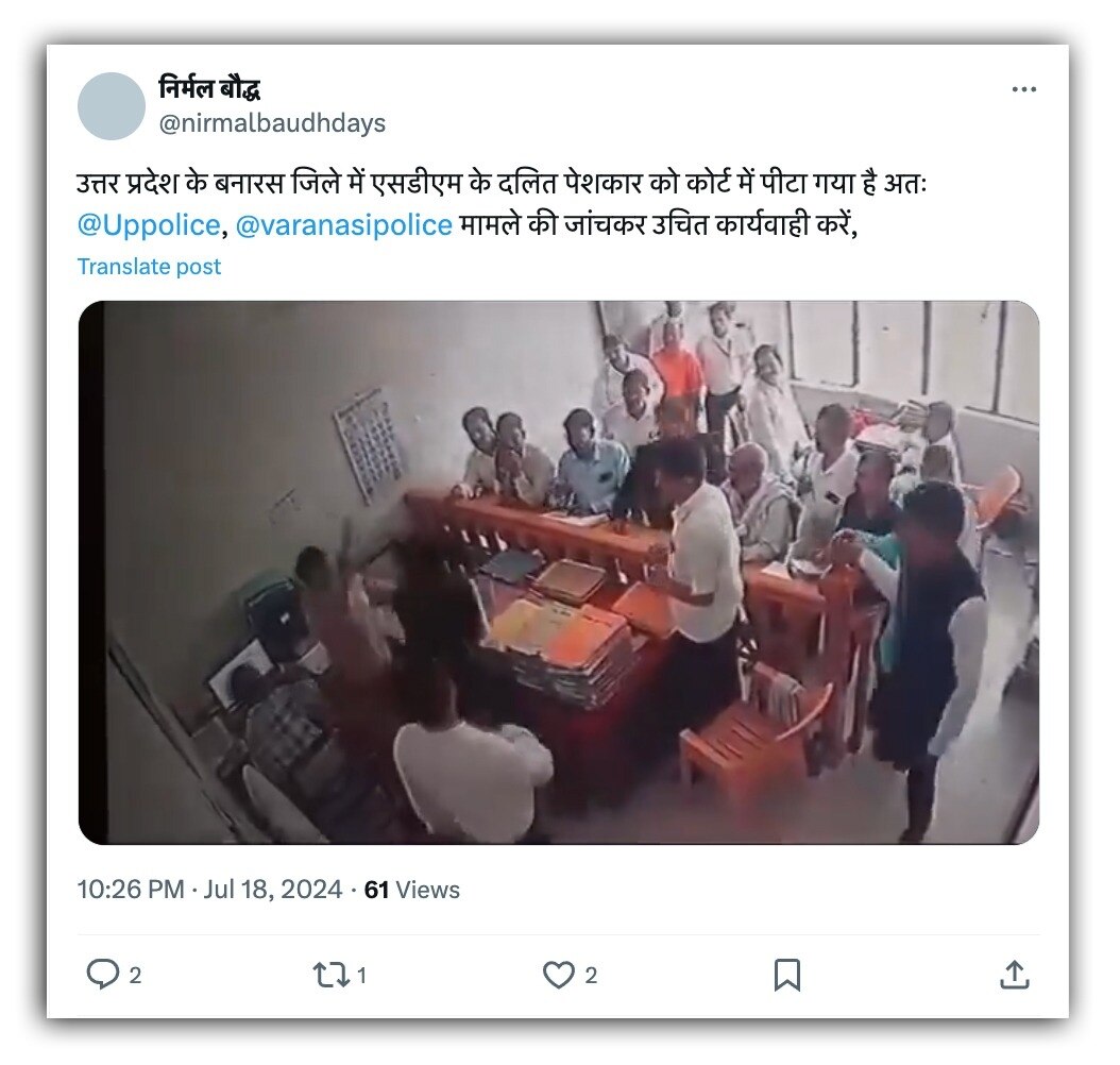 साफ है, वाराणसी में पेशकर की पिटाई के वीडियो को एसडीएम की पिटाई से संबंधित बताकर भ्रम फैलाया जा रहा है.