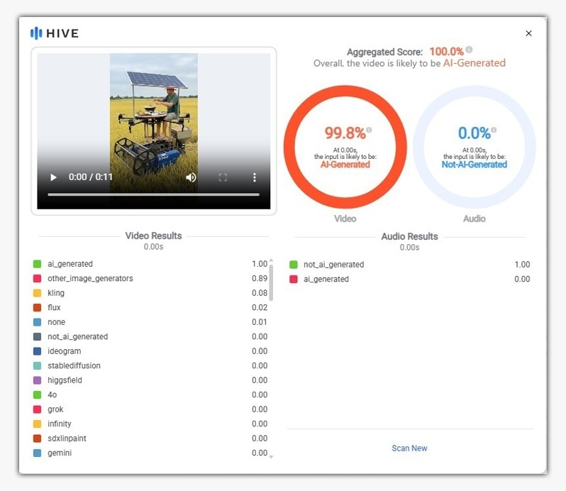 इसके बाद हमने वायरल वीडियो को AI डिटेक्टर टूल से टेस्ट किया. Hive Moderation टूल ने वीडियो को 99.8 प्रतिशत AI से बना हुआ बताया.